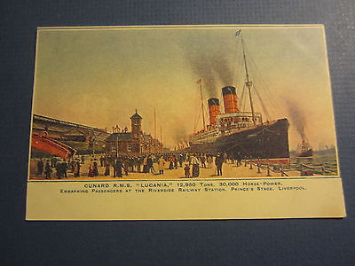 Old c.1905 - RMS LUCANIA Steamship POSTCARD - Cunard - Riverside Railway Station