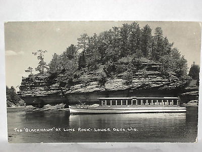 Title (ebay affiliate link): 1940s REAL PHOTO POSTCARD THE BLACKHAWK BOAT AT LONE ROCK LOWER DELLS WI