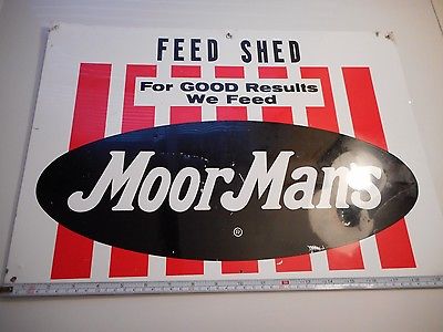 VINTAGE MOORMAN'S FEED TIN SIGN "FEED SHED" 14" X 20" GREAT ADVERTISING ITEM
