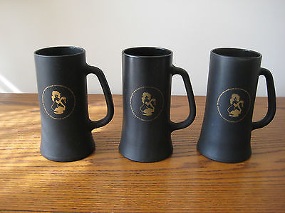 SET OF 3 VINTAGE PLAYBOY FEMLIN GIRL BEER STEINS BLACK GLASS W/ CLEAR BOTTOMS