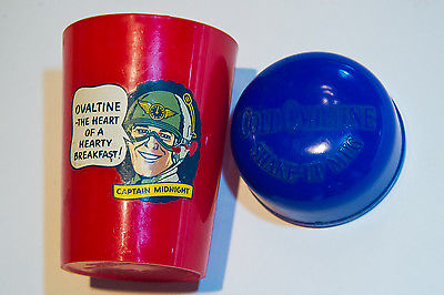 Title (ebay affiliate link): Vintage 1953 Cold Ovaltine Shake-Up Mug with lid, showing Captain Midnight