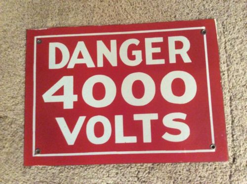 Vintage Original DANGER 4000 VOLTS Porcelain Sign 14"X10"