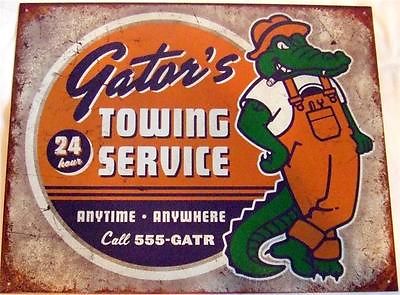 Gators Car Towing Service Retro Tin Wall Sign Florida College Dorm USA 16" Long