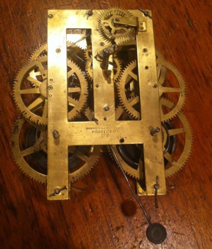 Title (ebay affiliate link): Antique Brewster & Ingrahams Brass Clock Works Movement Clock Parts Lot #7
