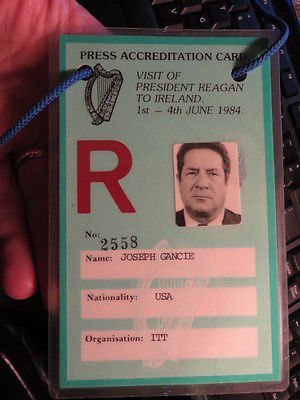 Title (ebay affiliate link): 1984 President Reagan Visit to Ireland Press Pass
