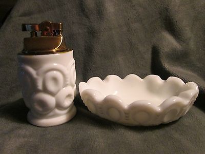 VINTAGE MILK GLASS LIGHTER AND ASHTRAY