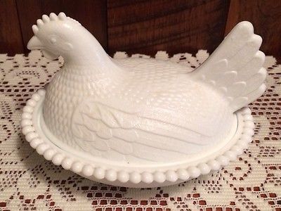 Title (ebay affiliate link): LARGE VINTAGE BEADED RIM INDIANA MILK GLASS HEN ON NEST- COLLECTIBLE ITEM L@@K!