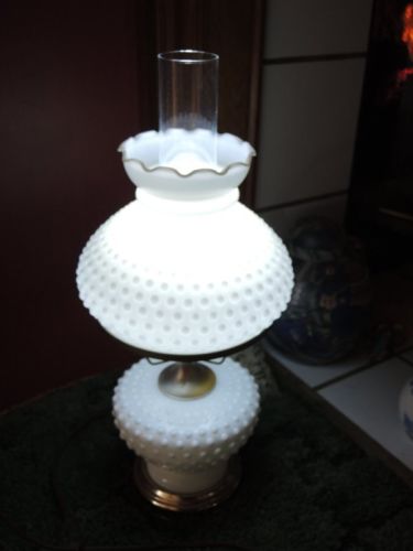 VINTAGE~MILK GLASS HURRICANE LAMP~WORKS APPROX 19" X 9"