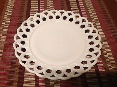 Depression White milk glass dish/plate Lace /ribbon scalloped edge