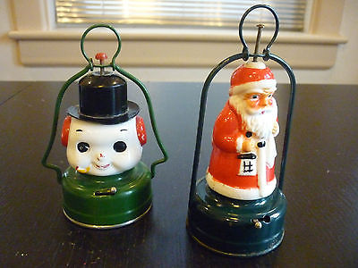 Vintage Milk Glass Battery Operated Santa Claus & Snow Man Signal Lanters