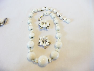 Title (ebay affiliate link): CRISP Vintage Estate White Milk Glass Necklace, 2 Plastic & Rhinestone Pins