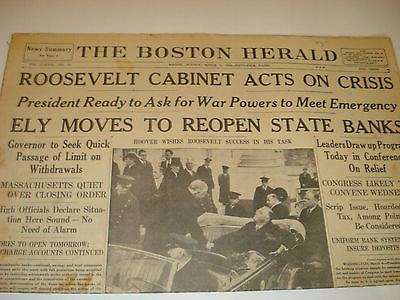 ORIGINAL FDR 1933 NEWSPAPER ON THE DEPRESSION AND CLOSING BANKS!!