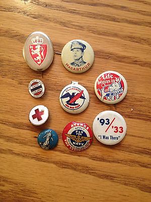Vintage Lot of 9 Political Pin Buttons Mac Arthur,Willkie,war fund