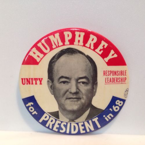 Title (ebay affiliate link): 1968 Hubert Humphrey Unity Responsible Leadership President Pin Back Button 3.5"