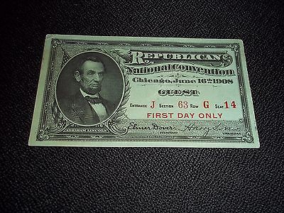 Title (ebay affiliate link): VINTAGE 1908 REPUBLICAN NATIONAL CONVENTION CHICAGO GUEST TICKET