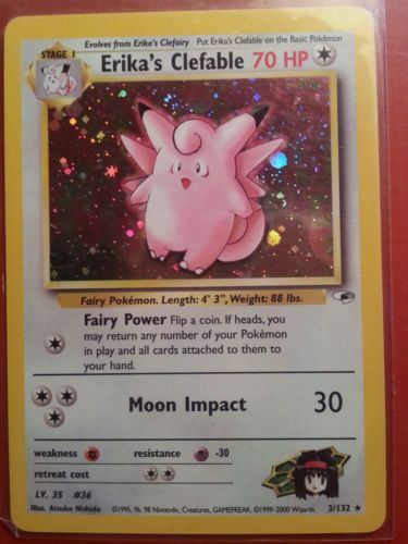 Title (ebay affiliate link): Rare holographic erikas clefable pokemon card