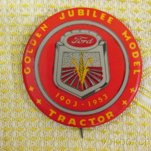 Title (ebay affiliate link): Original Antique Vtg 1903 - 1953 Ford Golden Jubilee Tractor Pinback Button Red