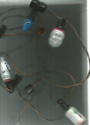 c1930's Vintage Christmas Tree Lights with Figural Santa & Snowman Bulbs