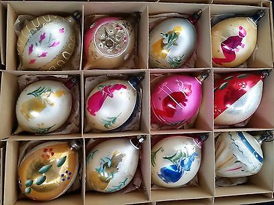 12 Large Hand Blown, Hand Painted 1940's from Poland Teardrops Top Cone Shape