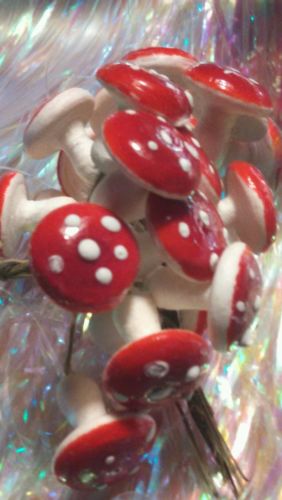 [GOOD STUFF] Vintage SPUN Cotton POISON MUSHROOMS Germany CHRISTMAS Decorations
