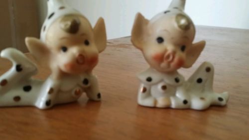 Title (ebay affiliate link): VINTAGE PAIR CHRISTMAS PIXIE - ELVES POLKA DOTS JAPAN white 40s 50s 1950s 1940s