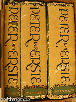 1949 VINTAGE 3 GERMAN BOOKS ROMAN PETER DER ERSTE LEO TOLSTOY ORIGINAL BOX