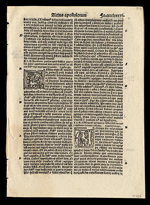 Antique 1519 Bible Leaf New Testament Book of Acts 25-27 Historiated Initials