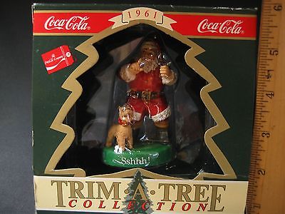 Title (ebay affiliate link): 1990 Coca Cola Trim A Tree Santa Claus With Dog Sshhh! Ornament