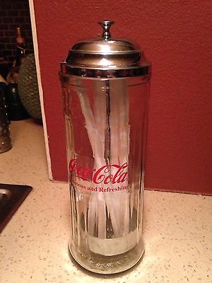 AUTHENTIC COCA COLA STRAW DISPENSER HOLDER 1992 VTG GLASS CHROME ORIGINAL
