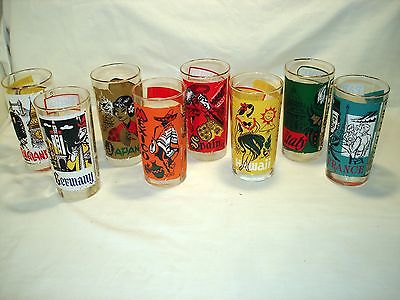1960s COCA-COLA WORLD TRAVEL GLASSES GLASS EXCELLENT CONDITION FULL SET