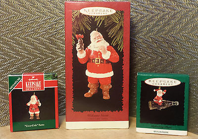 LOT OF 3 HALLMARK KEEPSAKE CHRISTMAS ORNAMENTS "COCA-COLA" SANTA CLAUS