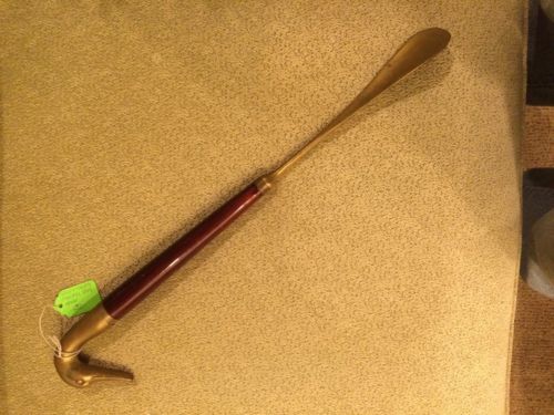 Antique Brass And Mahogany Shoehorn