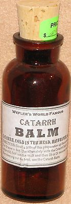 Title (ebay affiliate link): Reproduction WEFLER'S WORLD FAMOUS CATARRH BALM Brown Glass Bottle with Corkl
