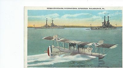 VINTAGE BIPLANE & BATTLESHIPS POSTCARD from Sesqui-Centennial Expo-Phila 1926
