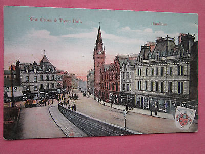 HAMILTON, NEW CROSS & TOWN HALL vintage coloured postcard 1905