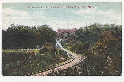 Title (ebay affiliate link): "down the track from Coloma to Paw Paw Lake, Mich." - 1910