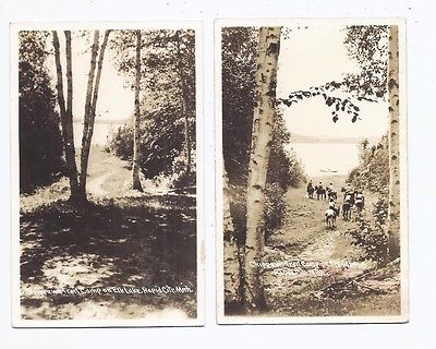 RAPID CITY MI REAL PHOTO RPPC POSTCARD (2) CHIPPEWA TRAIL CAMP ELK CIRCA 1941