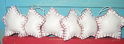 Primitive Christmas White-Red Trim Felt Star Ornaments Ornies OOAK Year Round