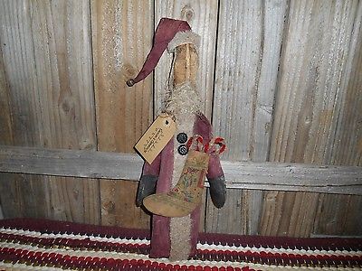 Title (ebay affiliate link): Primitive Christmas Grungy Santa Doll with Quilt Stocking and Candy Canes