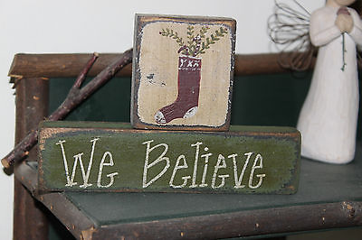 Primitive Christmas Wooden Blocks Shelf Sitter ( WE BELIEVE)