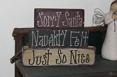 Title (ebay affiliate link): Primitive Christmas Wooden Shelf Sitter (SORRY SANTA NAUGHTY FELT JUST SO NICE)