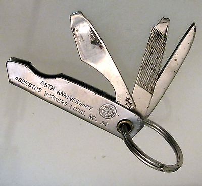 Vintage United Steelworkers Keychain Pocket Knife Asbestos Workers Local 34