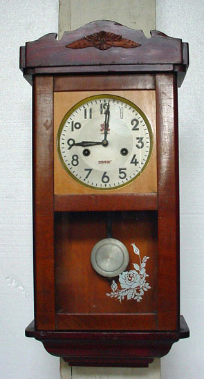 ANTIQUE ETCHED FLORAL GLASS PANEL CARVED WALL CLOCK