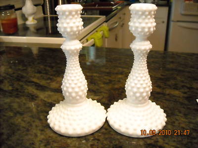 Fenton Milk Glass Hobnail Candlesticks candleholders 9"
