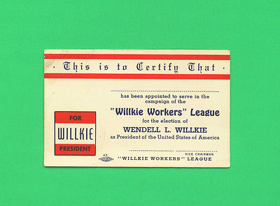 Title (ebay affiliate link): WENDELL WILLKIE LEAGUE for the election of Willkie as President of the U.S. 1940