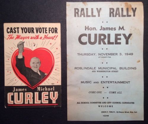 Title (ebay affiliate link): Two 1940's James Michael CURLEY FOR MAYOR_ CARD & RALLY FLIER -ROSLINDALE MASS.