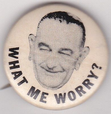 Title (ebay affiliate link): 1960's Vietnam WHAT ME WORRY Anti LBJ Protest Pinback Button Pin Badge Political