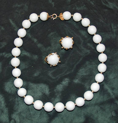 White Milk Glass Demi Parure Necklace and Earrings