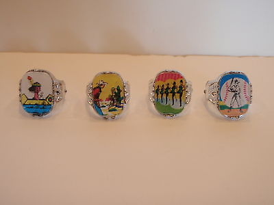 FOUR VINTAGE ORIGINAL VARI VUE FLICKER TOY PREMIUM RINGS