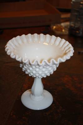 FENTON GLASS WHITE HOBNAIL MILK RUFFLED FAIRY LAMP BASE